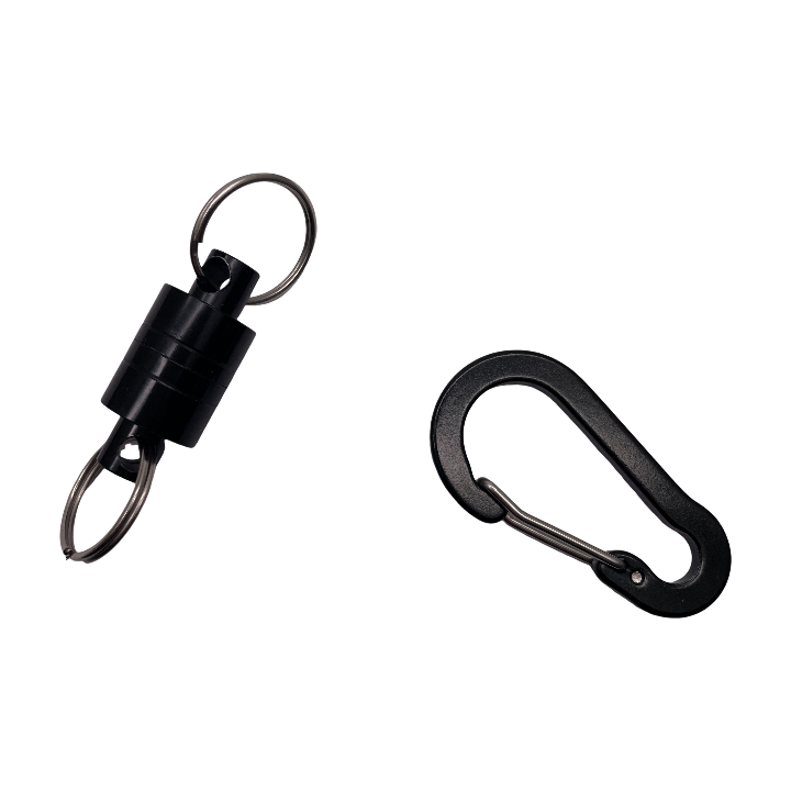(4) safety fall protection components such as harness buckle, belt buckle, safety carabiner etc;